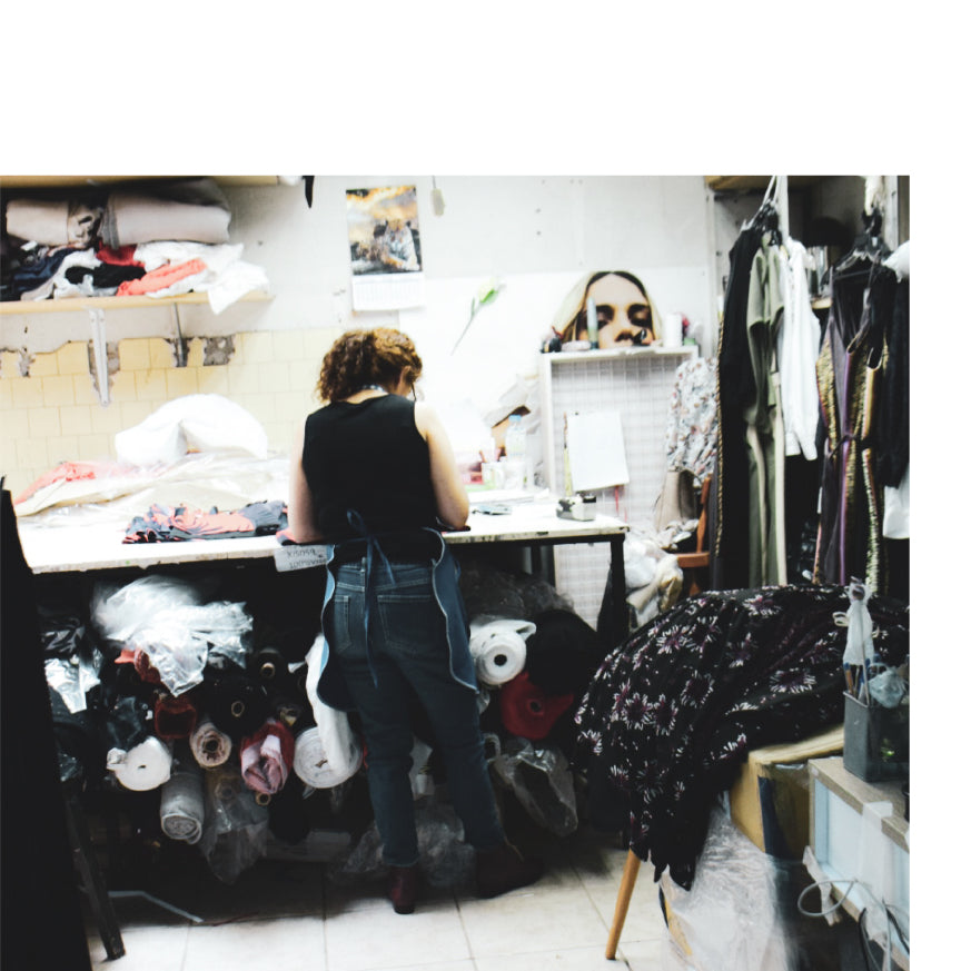 La fábrica es la casa de inspiración. Nunca desechamos nuestras telas y siempre las tenemos disponibles para futuras creaciones. Creemos que nada es desechable y siempre podremos encontrarle una segunda vida a nuestras materias primas y retazos. Esto nos permite tener un contacto directo con el material y una ámplia gama de opciones al minuto de diseñar, teniendo un proceso que es inspirador y liberador al mismo tiempo.